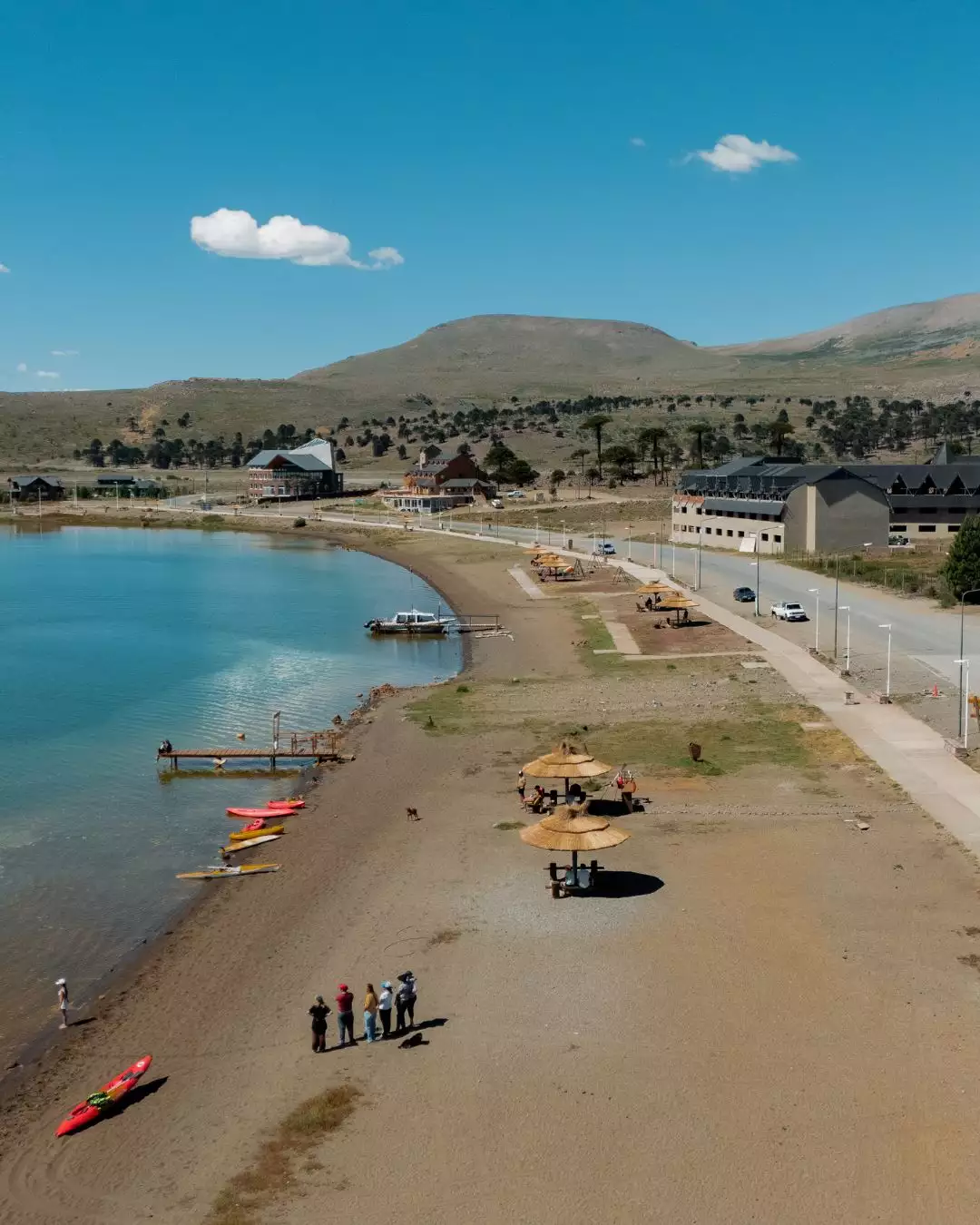Durante el verano, que coincide con la temporada termal de Copahue, el paisaje cambia completamente y los lagos, montañas y bosques se pueden disfrutar actividades como caminatas, cabalgatas, trekking, windsurf, pesca de truchas, alternando con el termalismo y realizando excursiones al volcán, a sus cascadas y lagunas.