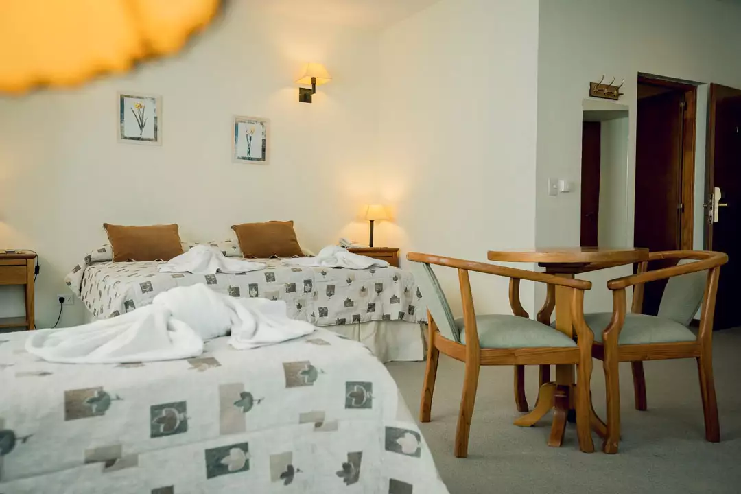 Todas las habitaciones singles, dobles, triples como también nuestra exclusiva suite con hidromasaje están equipadas con calefacción individual por sistema dual, piso radiante eléctrico y radiador, televisión satelital, teléfono DDI y con extraordinarias vistas al Lago Caviahue o al Parque de Nieve.